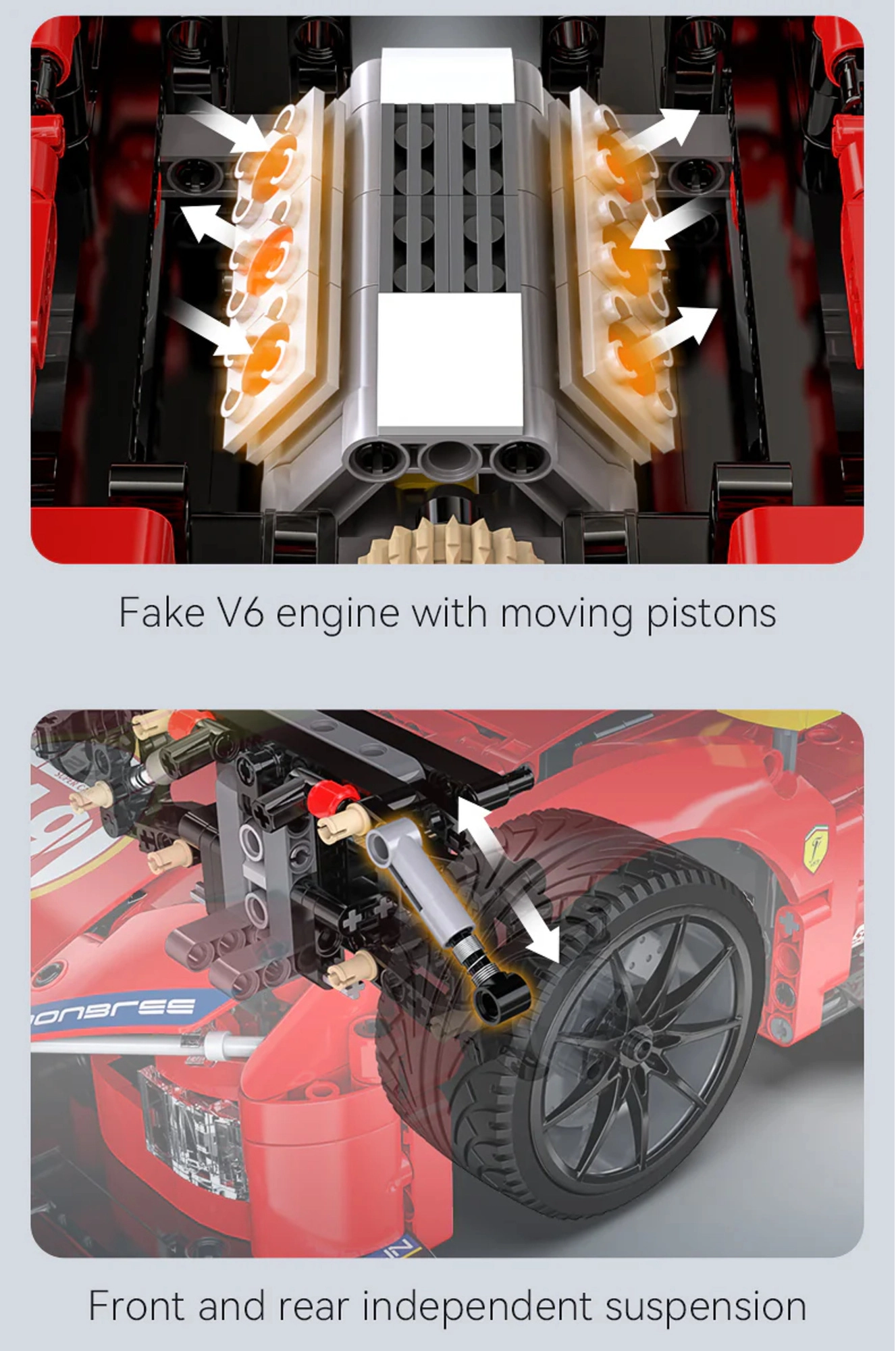Model oferuje skrętne przednie koła, pracujące zawieszenie, ruchome tłoki silnika V6 oraz otwierane elementy, które odsłaniają realistyczne wnętrze z kierownicą i fotelem kierowcy. Konstrukcja jest kompatybilna z elementami CaDA i innych producentów oraz może zostać rozszerzona o komponenty zdalnego sterowania (bateria JV1010, kontroler JV8011, silnik L Pro JV5028, serwo Pro JV5029 – nie są częścią zestawu).