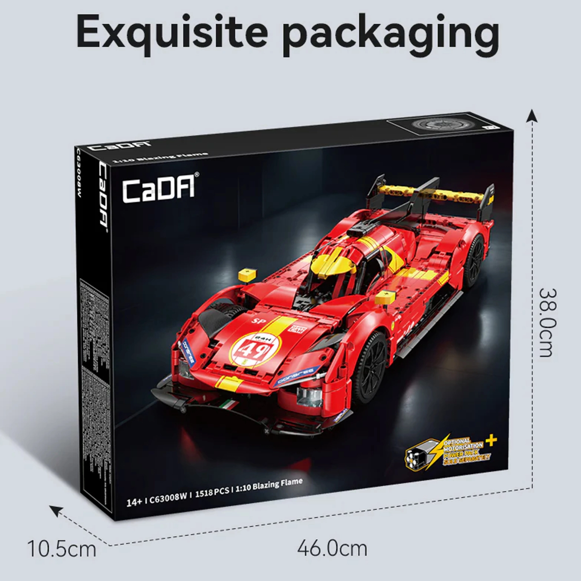 CaDA Blazing Flame to precyzyjna techniczna konstrukcja dla wszystkich miłośników szybkich aut i przemyślanych mechanizmów. Stwórz realistyczny wyścigowy specjal z aerodynamicznym designem, dopracowaną karoserią i bogatymi detalami. Dzięki przejrzystej instrukcji krok po kroku model będzie odpowiedni także dla zaawansowanych młodych konstruktorów pod nadzorem dorosłych.
