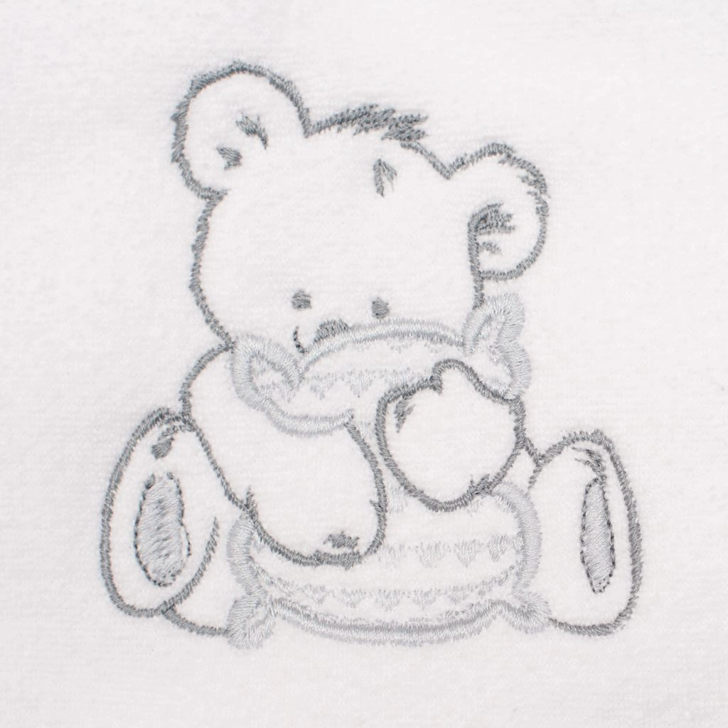 Ręcznik został zaprojektowany dla codziennego komfortu niemowląt i starszych dzieci. Uroczy haft misia dodaje mu figlarnego wyglądu, a biała barwa sprawia, że jest czysty i uniwersalny.