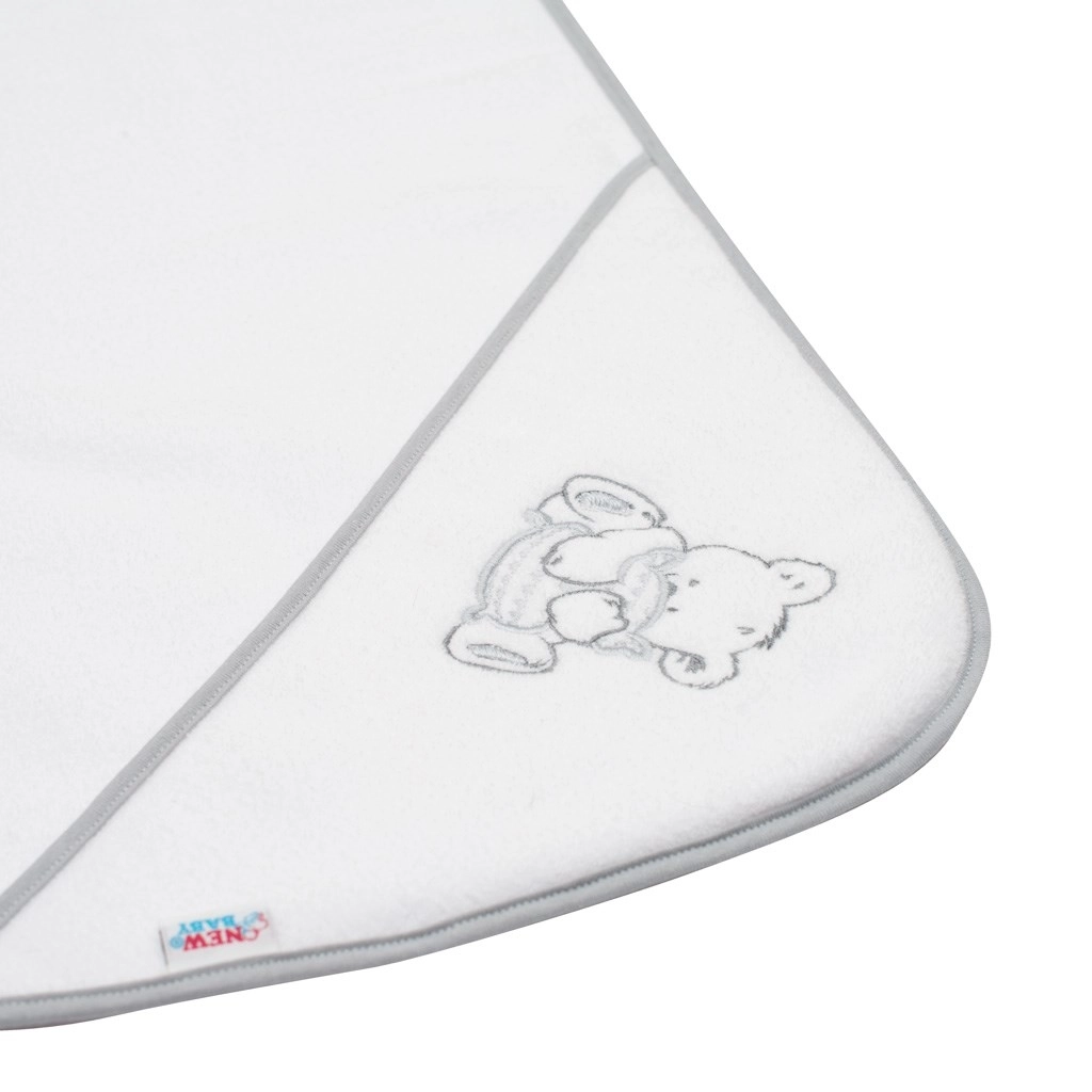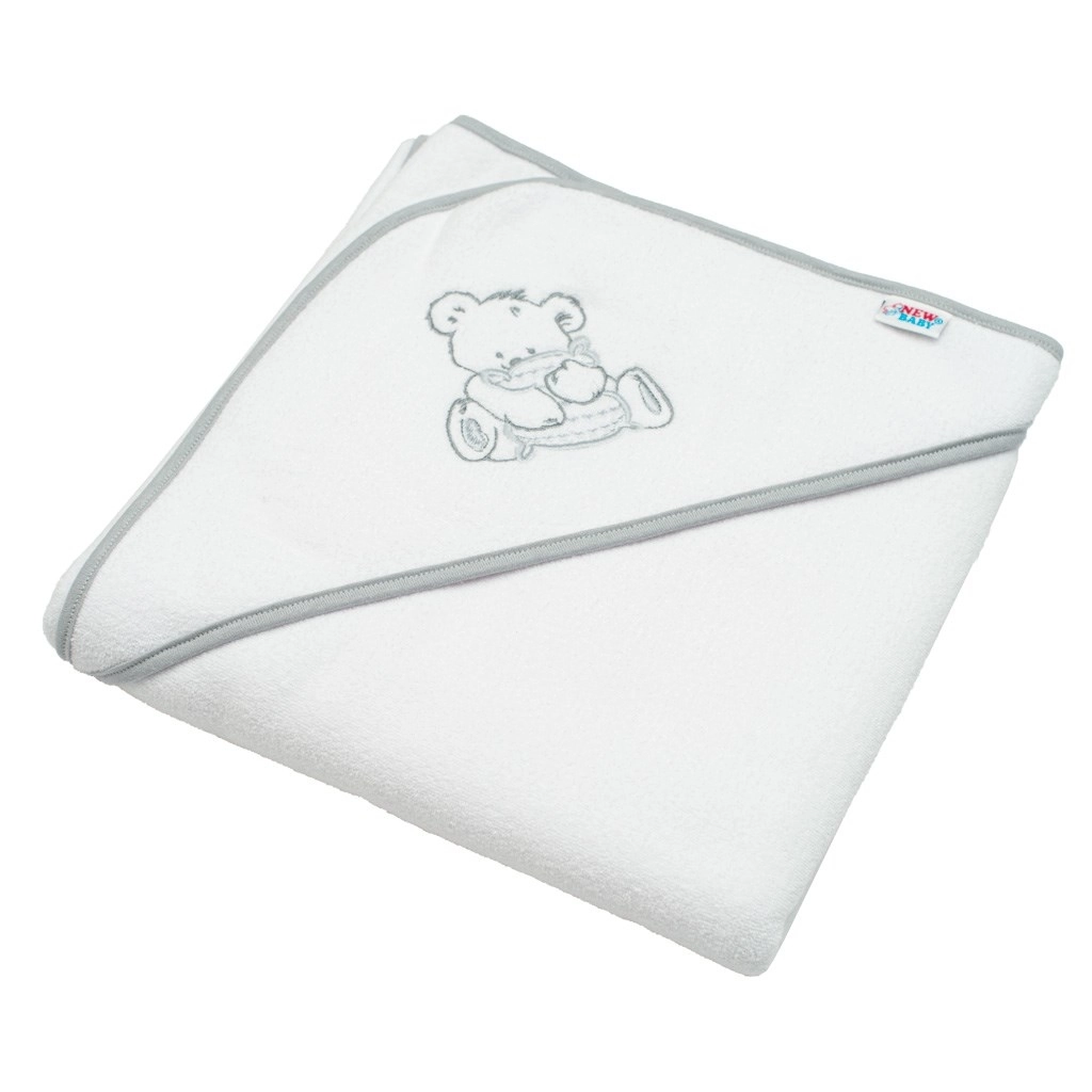 Miękki i chłonny dziecięcy ręcznik z kapturem NEW BABY z przyjemnej frotty jest idealny po każdej kąpieli. Oferuje szybkie schnięcie, doskonałą absorpcję oraz ochronę główki dzięki praktycznemu kapturowi. Uroczy haft z misiem ucieszy każde niemowlę i rodziców.