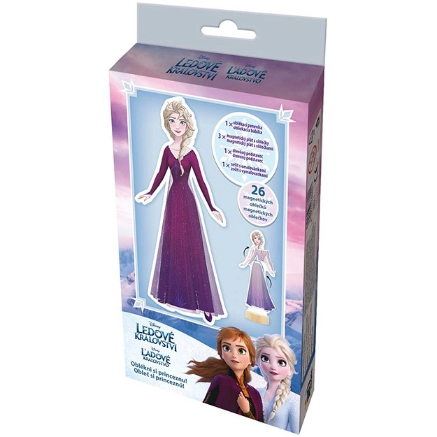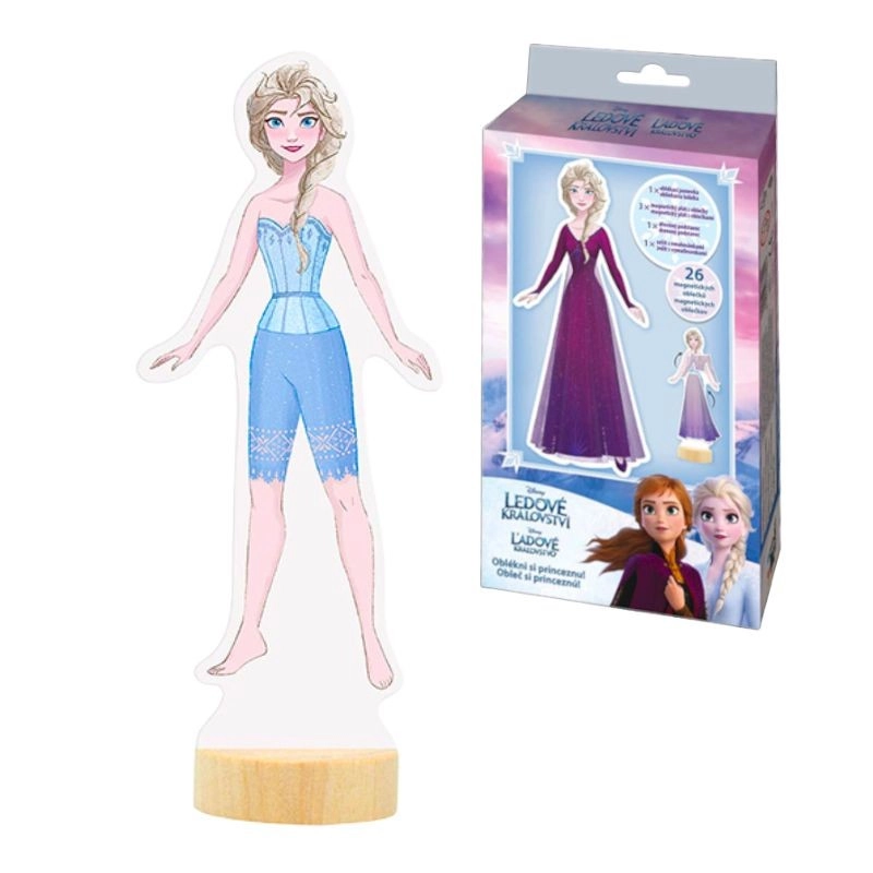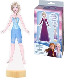Odkryj magię świata FROZEN z magnetyczną lalką Elsą, którą dzieci mogą przebierać w różne stroje. Dzięki drewnianej podstawce lalka stabilnie stoi, a dzieci mogą łatwo tworzyć własne modowe kombinacje. W zestawie znajduje się także kolorowanka z 8 obrazkami, zapewniająca kolejne godziny zabawy przy stole.