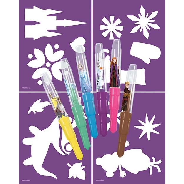 Odkryj radosne tworzenie z ulubionym motywem Krainy Lodu. Zestaw dmuchanych flamastrów pozwala dzieciom łatwo tworzyć oryginalne obrazki – wystarczy dmuchnąć w flamaster przez szablon, a kolor delikatnie rozproszy się na papierze. Idealny do domowego rękodzieła, dekoracji i wykonywania kartek.