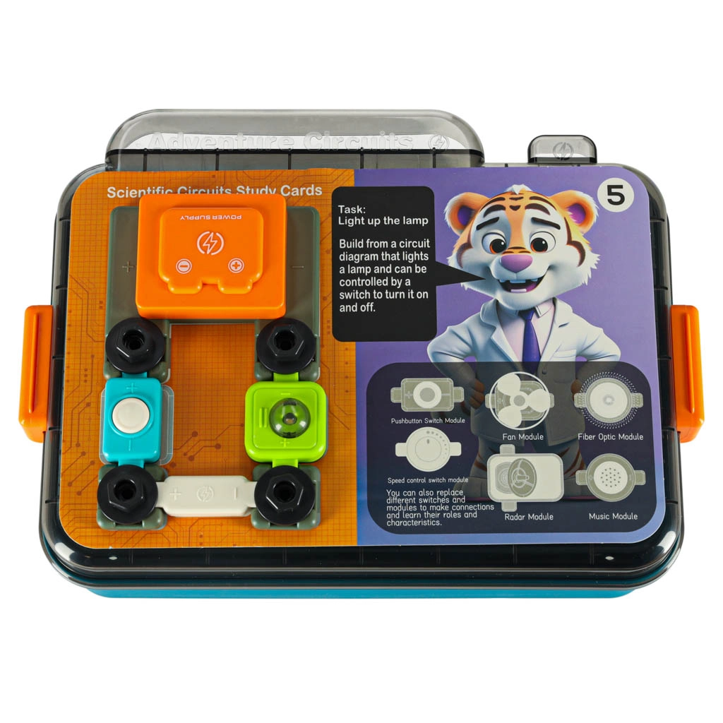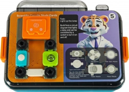 Ten sprytny zestaw STEM zapewnia dzieciom bezpieczne i poglądowe wprowadzenie do świata obwodów elektrycznych. Modułowe elementy łączą się w prosty sposób, a każdy podłączony moduł natychmiast pokazuje rezultat – zapalone światło, grającą melodię lub obracający się wiatraczek. Interaktywny świecący klucz obwodu pomaga zrozumieć, czym jest zamknięcie obwodu.