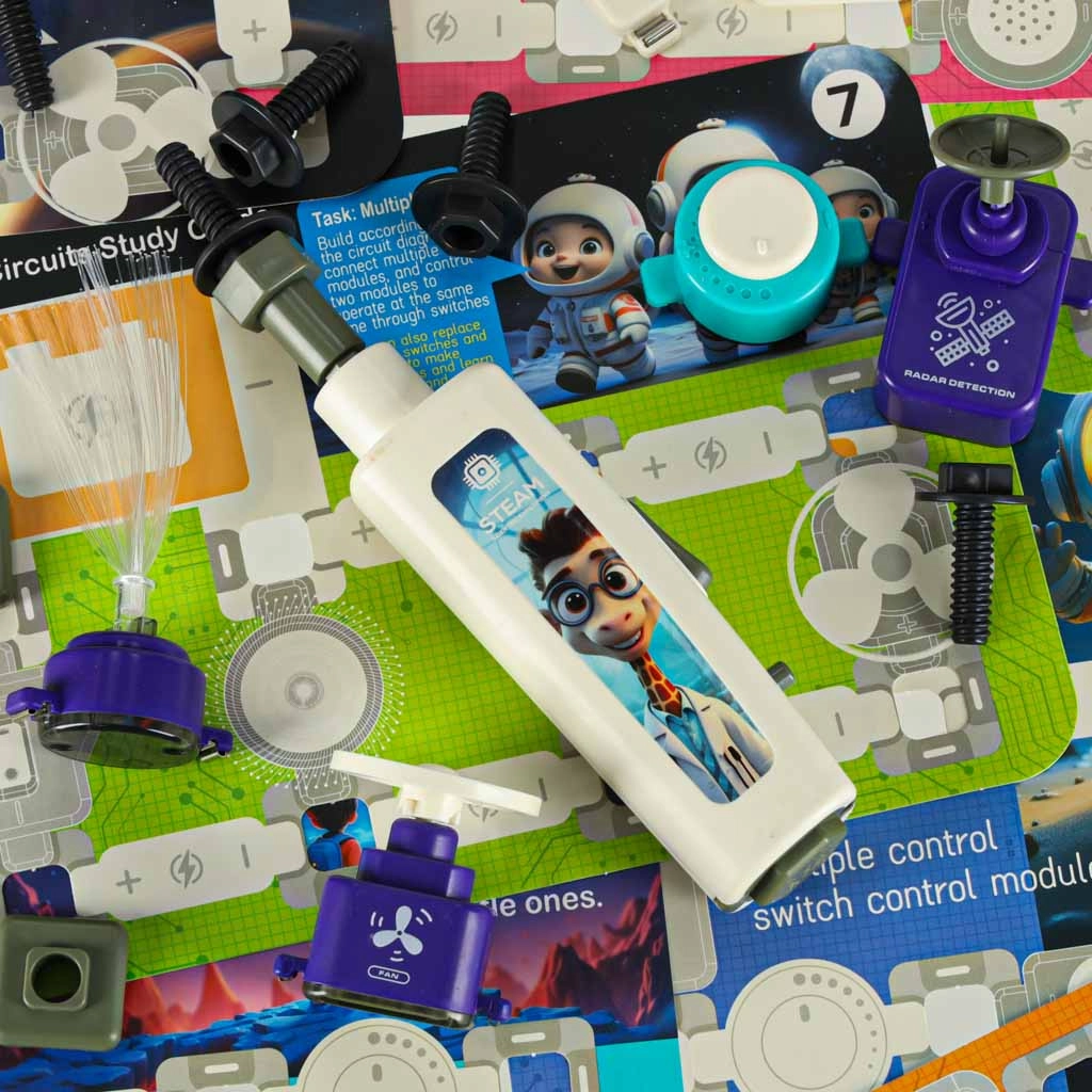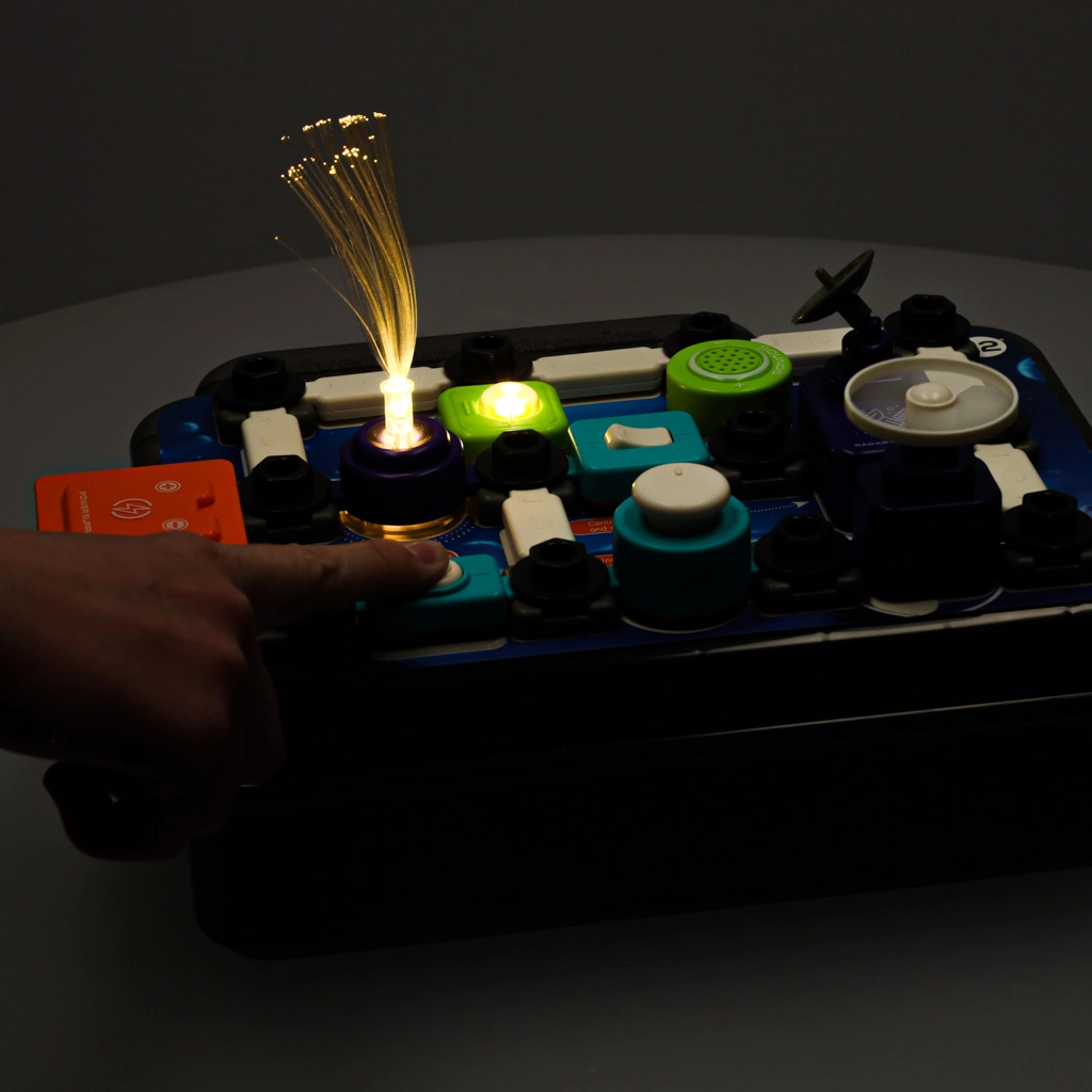 Modułowe elementy zatrzaskują się w podstawie, a dzięki wyraźnie oznaczonym komponentom dzieci szybko zrozumieją zasadę zasilania, przełączników i odbiorników. Natychmiastowa informacja zwrotna wzmacnia motywację do nauki.