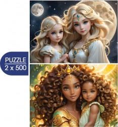 Zrelaksuj się z eleganckim zestawem dwóch puzzli po 500 elementów z motywem matki i córki inspirowanym symbolem księżyca i słońca. Idealny dla miłośników artystycznych ilustracji, wysokiej jakości wykonania i spokojnych chwil w domu.
