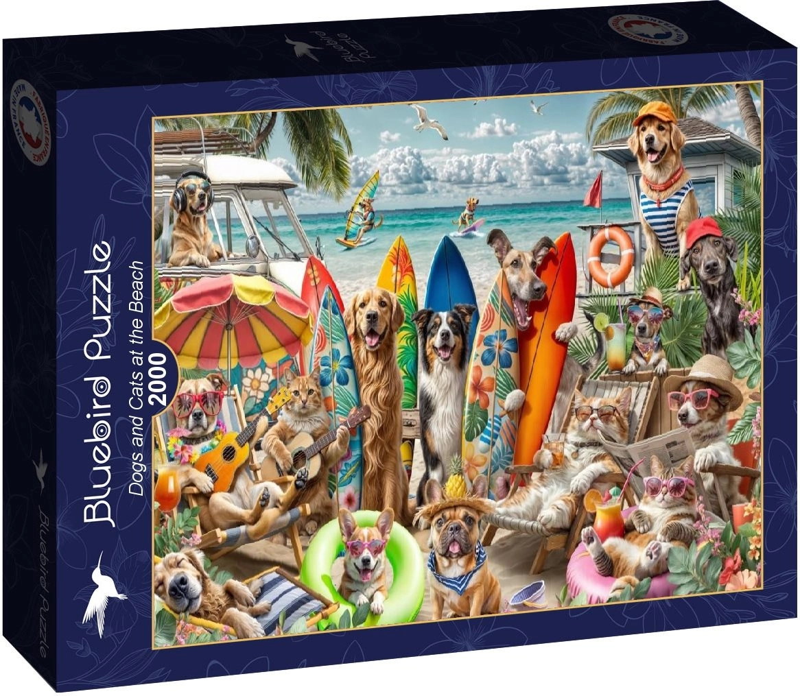 Ciesz się długimi godzinami zabawy z wysokiej jakości puzzlami BLUEBIRD z motywem uroczych pupili nad morzem. Zestaw zawiera 2000 elementów, a po ułożeniu tworzy efektowny obraz o wymiarach 98 × 69 cm – idealny dla miłośników zwierząt oraz bardziej wymagających układaczy.