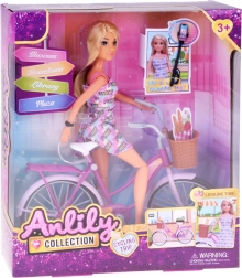 Stylowa lalka ANLILY na różowo‑fioletowym rowerze przynosi godziny fantastycznej zabawy. Ma ruchome ręce i nogi, nowoczesną sukienkę FUNKY, białe tenisówki, a do tego telefon z kijem do selfie, aby uchwycić każdą przygodę. Rower z przednim koszykiem i tylnym bagażnikiem naprawdę jeździ, więc zabawa jest realistyczna i płynna.