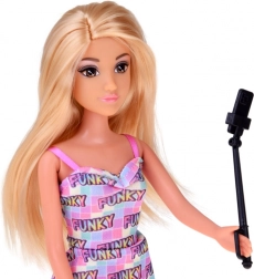 Lalka ma artykułowane kolana i łokcie, dzięki czemu łatwo pozuje podczas jazdy, robienia zdjęć i innych scenek. Nowoczesną sukienkę FUNKY i białe tenisówki uzupełnia stylowy dodatek – smartwatch.
