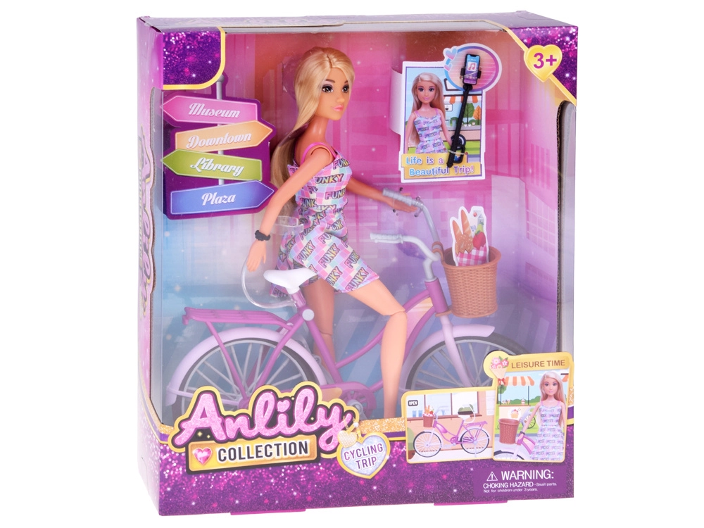Anlily lalka na rowerze ze smartfonem i kijem do selfie