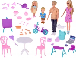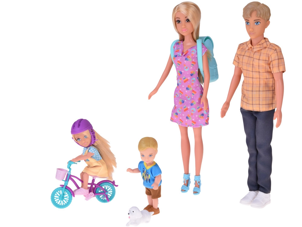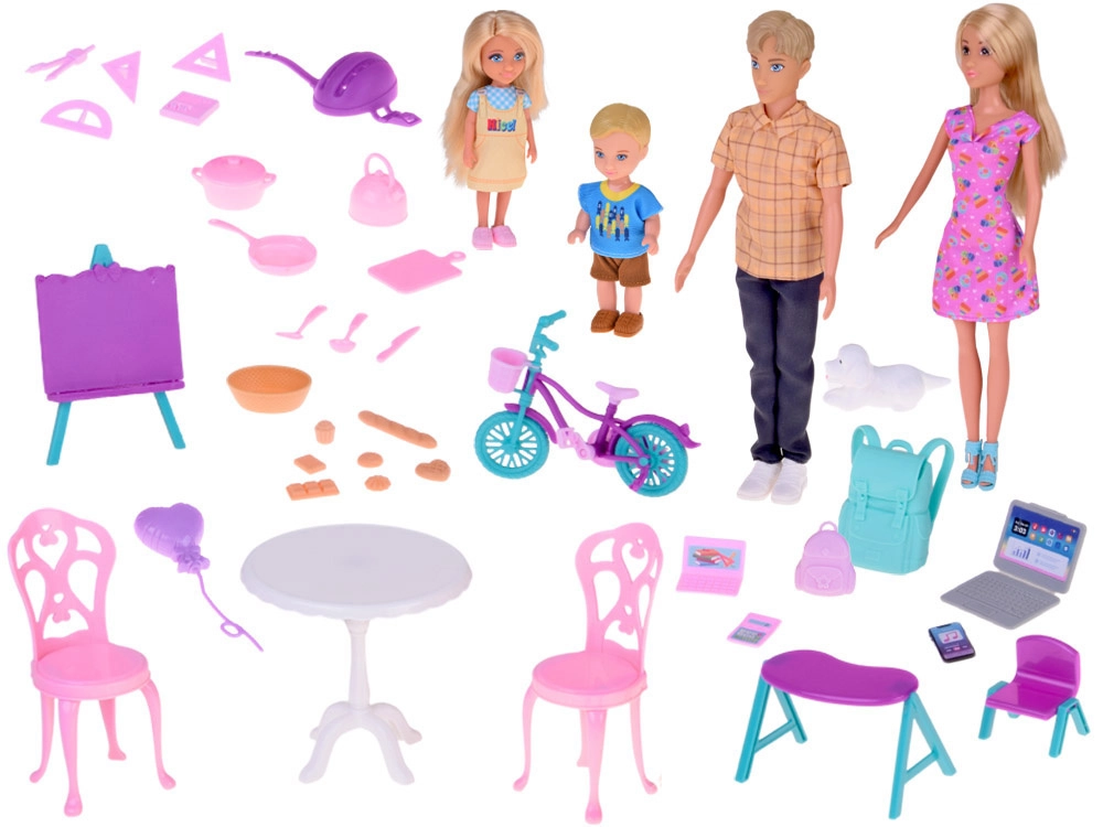 Cztery lalki z dopracowanymi strojami i ruchomymi stawami pozwalają dzieciom odgrywać codzienne sytuacje od śniadania aż po wieczorny relaks. W zestawie jest także uroczy piesek.
