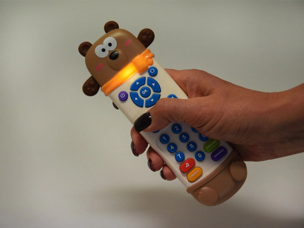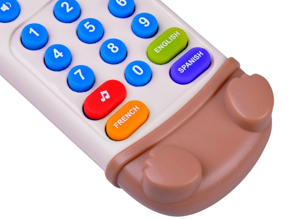 Ten interaktywny pilot w kształcie misia wygląda jak prawdziwe zdalne sterowanie, a dodatkowo ma miękkie gumowe uszka i łapki pełniące funkcję gryzaka. Kolorowe, czytelne przyciski zachęcają do odkrywania, a bezpieczna konstrukcja jest dostosowana do najmłodszych dzieci.