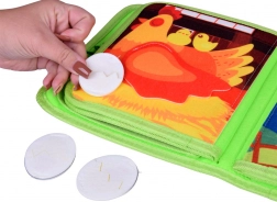 Tekstylnie wykonana, bez ostrych krawędzi, lekka i poręczna książeczka z zapięciem. Łatwo zabrać ją do auta, w odwiedziny czy na wakacje.