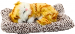 Śpiące kociątko na poduszce wygląda jak prawdziwe – miękka imitacja futerka, łagodny wyraz pyszczka i spokojna pozycja tworzą przytulną dekorację do pokoju dziecięcego, salonu czy biura. Realistyczne detale w odcieniach rudego z białymi akcentami przyciągają wzrok od pierwszego spojrzenia.