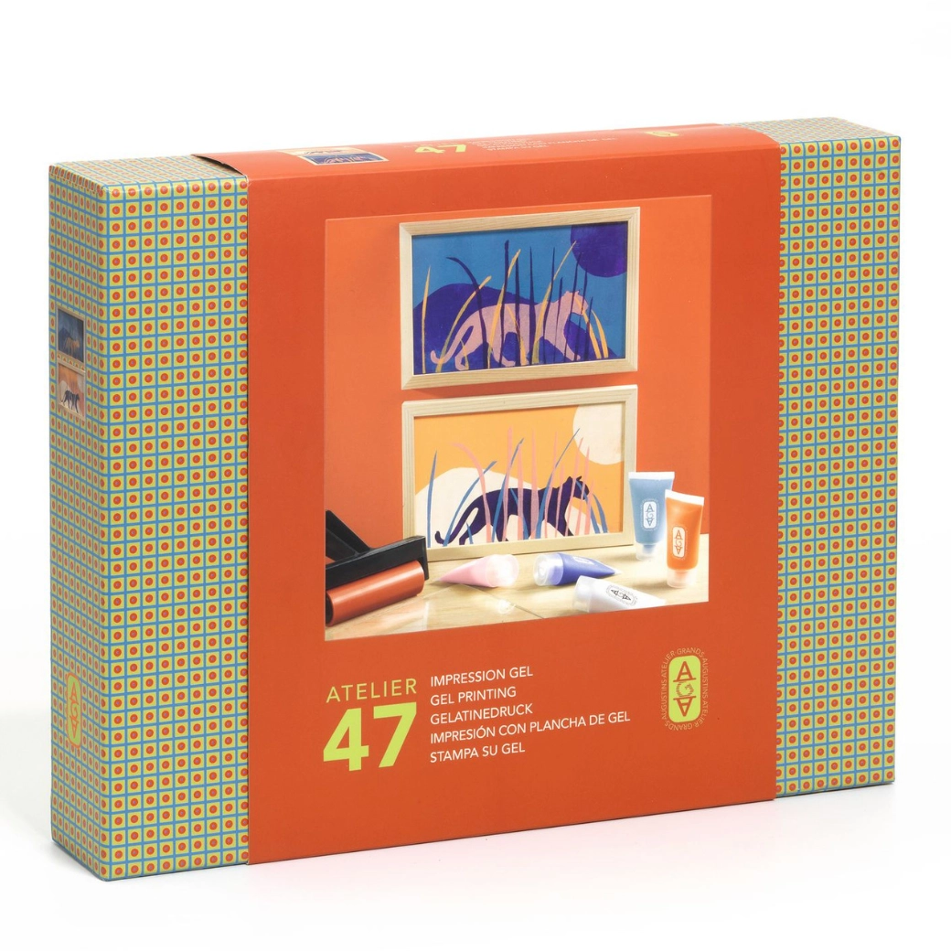 Zestaw do druku żelowego DJECO Atelier udostępnia popularną technikę gelli printingu w warunkach domowych. Na przezroczystą płytę żelową nanosisz farbę, rozprowadzasz ją brayerem i za pomocą szablonów tworzysz niepowtarzalne motywy. Następnie przykładasz papier i przenosisz odbitkę – każdy wydruk jest unikalny.