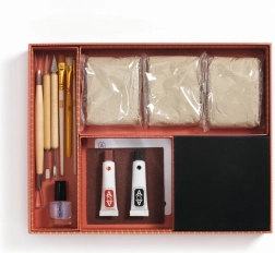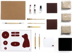 - Kompletny zestaw: glina, narzędzia, pędzle, szablony, lakier i akcesoria