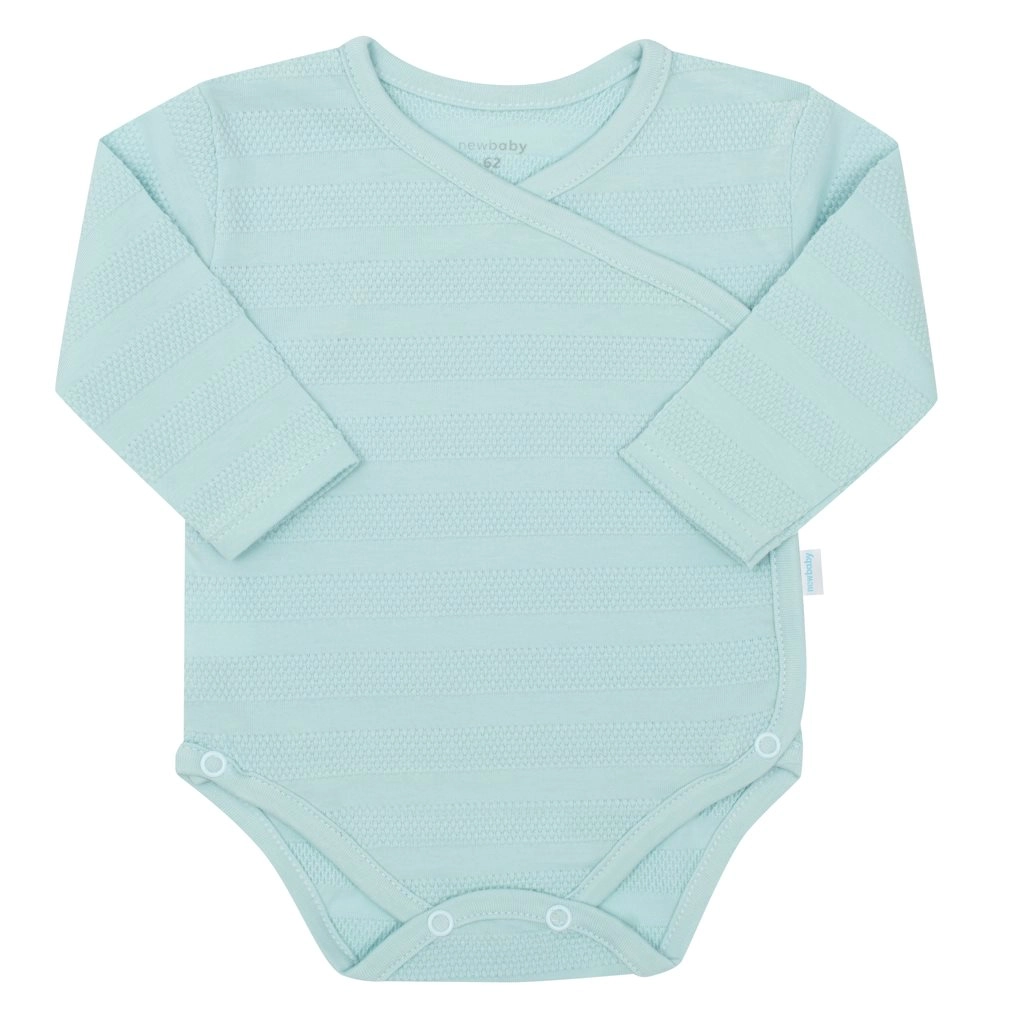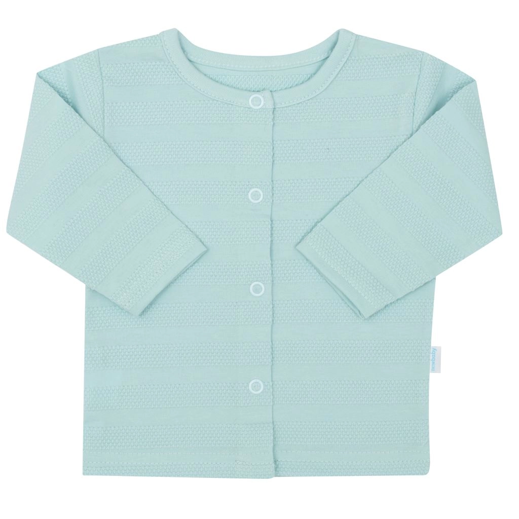 Zestaw sprawdzi się nie tylko do szpitala, ale też na co dzień. Szersze ściągacze i mankiety pewnie trzymają się na miejscu, nie uciskają i nie powodują dyskomfortu. Nowoczesny, subtelnie strukturyzowany/żebrowany design w delikatnym turkusowo‑niebieskim odcieniu wygląda czysto i uniwersalnie – dla dziewczynek i chłopców. Dostarczany w praktycznym EKO pudełku, świetny także jako prezent dla świeżo upieczonych rodziców.