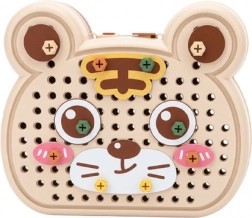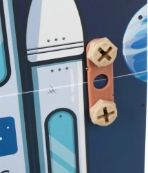 Ta kreatywna konstrukcyjna zabawka 3D zamienia zabawę w naukę. Dzięki elektrycznemu wkrętakowi dzieci łatwo przykręcą kolorowe elementy do perforowanej płyty i zbudują modele kosmiczne 2D i 3D – od rakiet po planety. Miśkowy kuferek służy jako stabilna baza oraz praktyczny schowek na wszystkie komponenty.