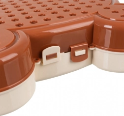 • Kuferek–miś z rączką i perforowaną pokrywą – płyta montażowa i pudełko w jednym.