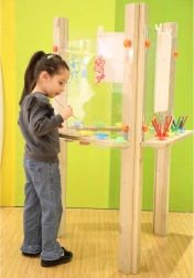 Przezroczyste płyty pozwalają malować bezpośrednio na powierzchni lub na papierze przymocowanym klipsami. Po zakończeniu pracy wystarczy je przetrzeć i znów wyglądają jak nowe.