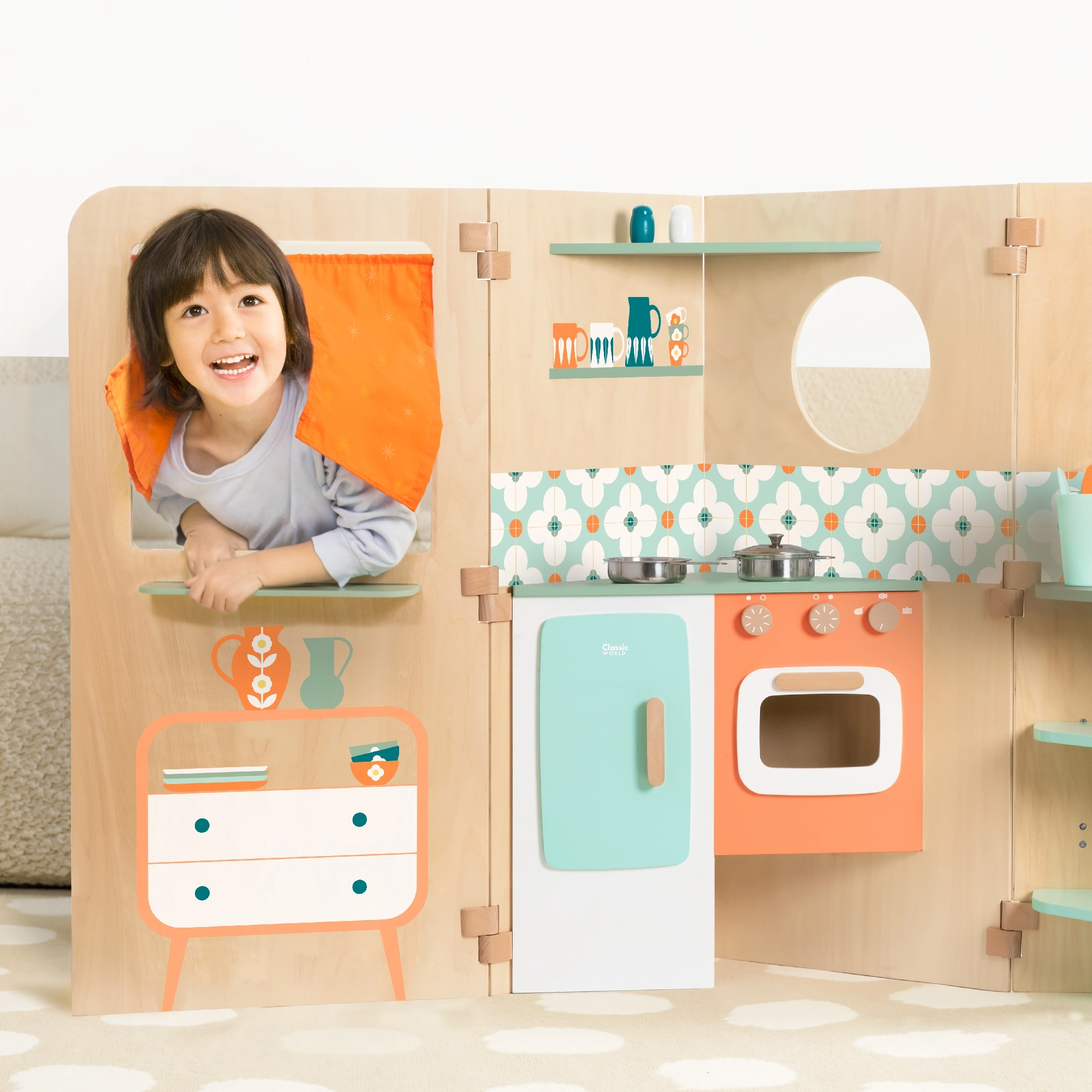 Odkryj składany wielofunkcyjny domek CLASSIC WORLD, który łączy kuchenkę, pralnię, tablicę oraz okienko do teatrzyku w jednym, kompaktowym zestawie. Dzięki sprytnemu otwieraniu i składaniu nie zajmuje miejsca, wspiera kreatywną zabawę, odgrywanie ról i rozwój motoryki dzieci od 3 lat.