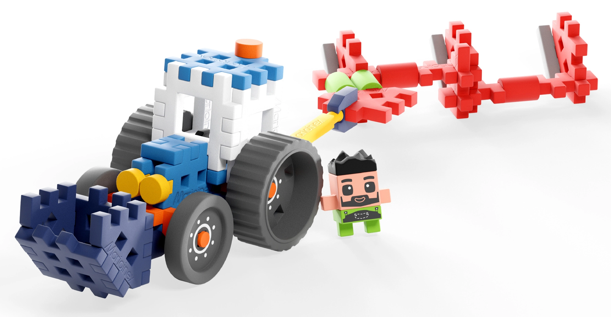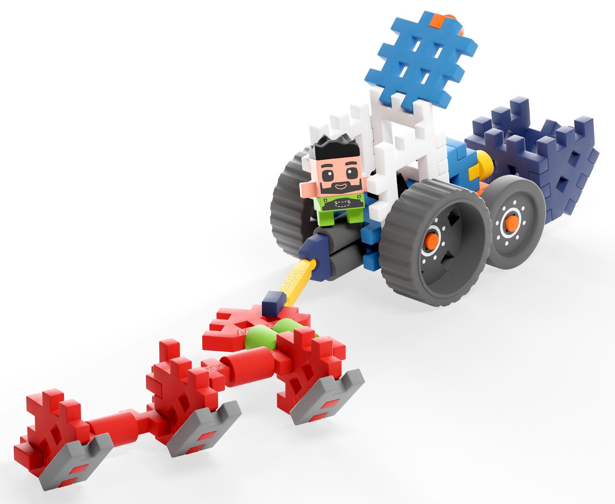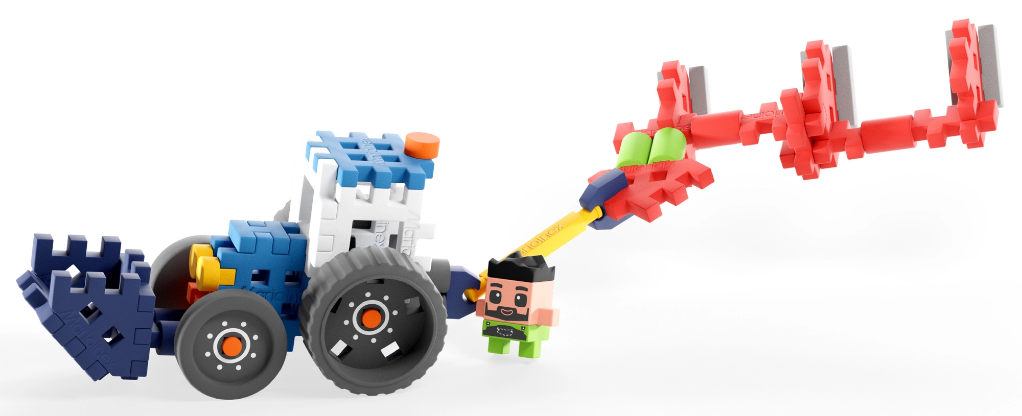 Z 50 kolorowych i elastycznych elementów łatwo złożysz traktor z przednią łyżką i tylnym pługiem. Model jest idealny do zabawy i wielokrotnych przebudów.
