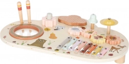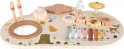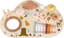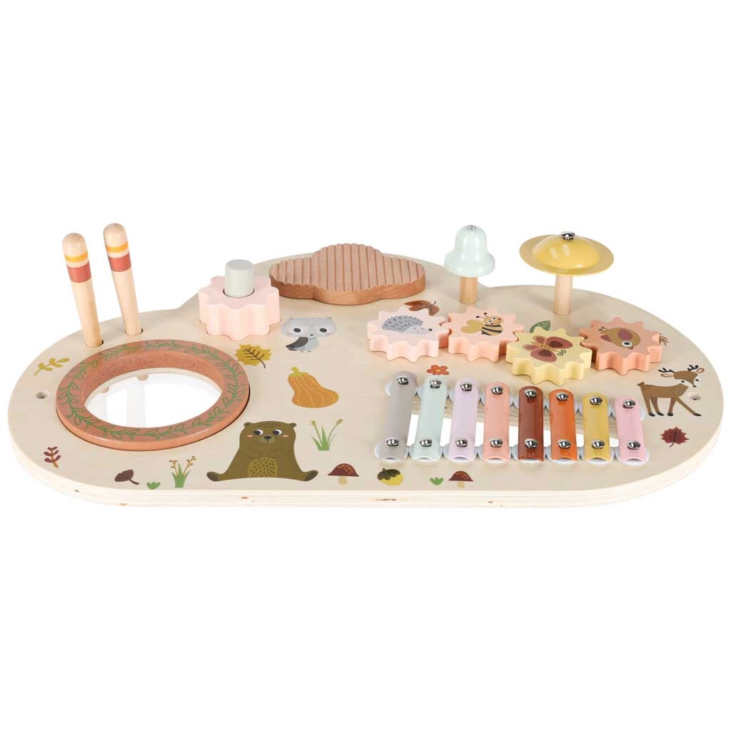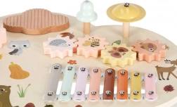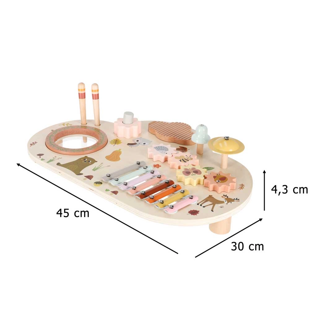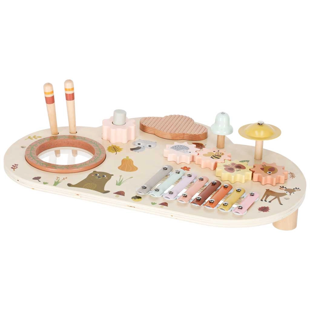 Niskie nóżki i solidny blat z naturalnego drewna zapewniają stabilność przy uderzaniu, kręceniu i klaskaniu – idealne dla maluchów.