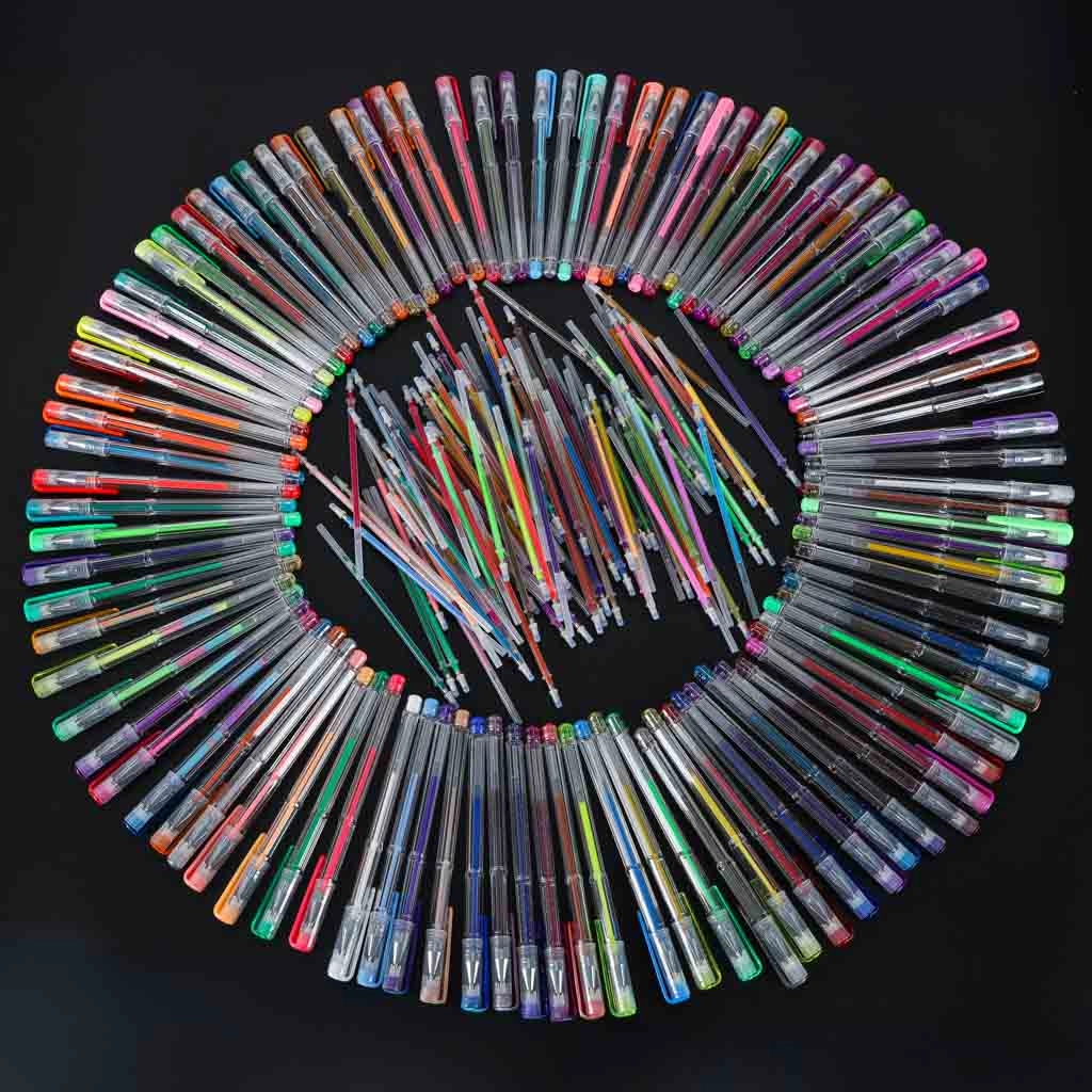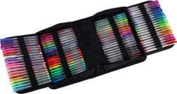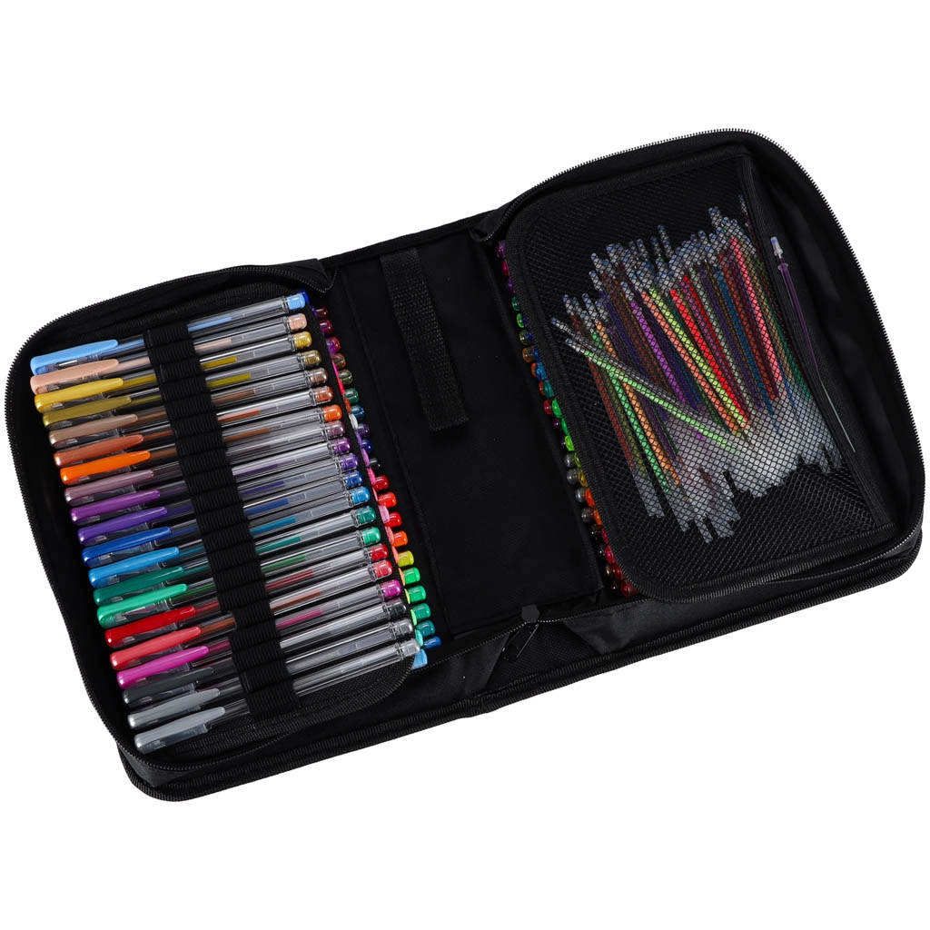 Odkryj uniwersalny zestaw do szkoły, biura i na czas wolny: 100 długopisów żelowych w bogatej palecie kolorów i efektów oraz 100 zapasowych wkładów. Przejrzyste składane etui na zamek utrzymuje każdy długopis na swoim miejscu, dzięki czemu wszystkie kolory masz zawsze pod ręką i bezpiecznie przechowane.