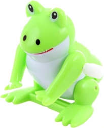 Ta urocza plastikowa żabka po nakręceniu kluczykiem rusza i wykonuje wesołe salta do tyłu. Dzięki kompaktowej formie mieści się w kieszeni i jest świetnym towarzyszem w podróży, do przedszkola i do domu.