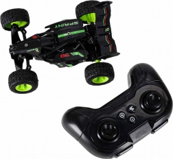 Duże koła terenowe z grubym bieżnikiem i przemyślane zawieszenie zapewniają pewność na żwirze, trawie i ziemi. Tylny spojler pomaga w stabilności przy wyższych prędkościach, a solidne podwozie wytrzymuje uderzenia podczas codziennego użytkowania. Pilot z dwoma joystickami umożliwia precyzyjne sterowanie nawet początkującym.