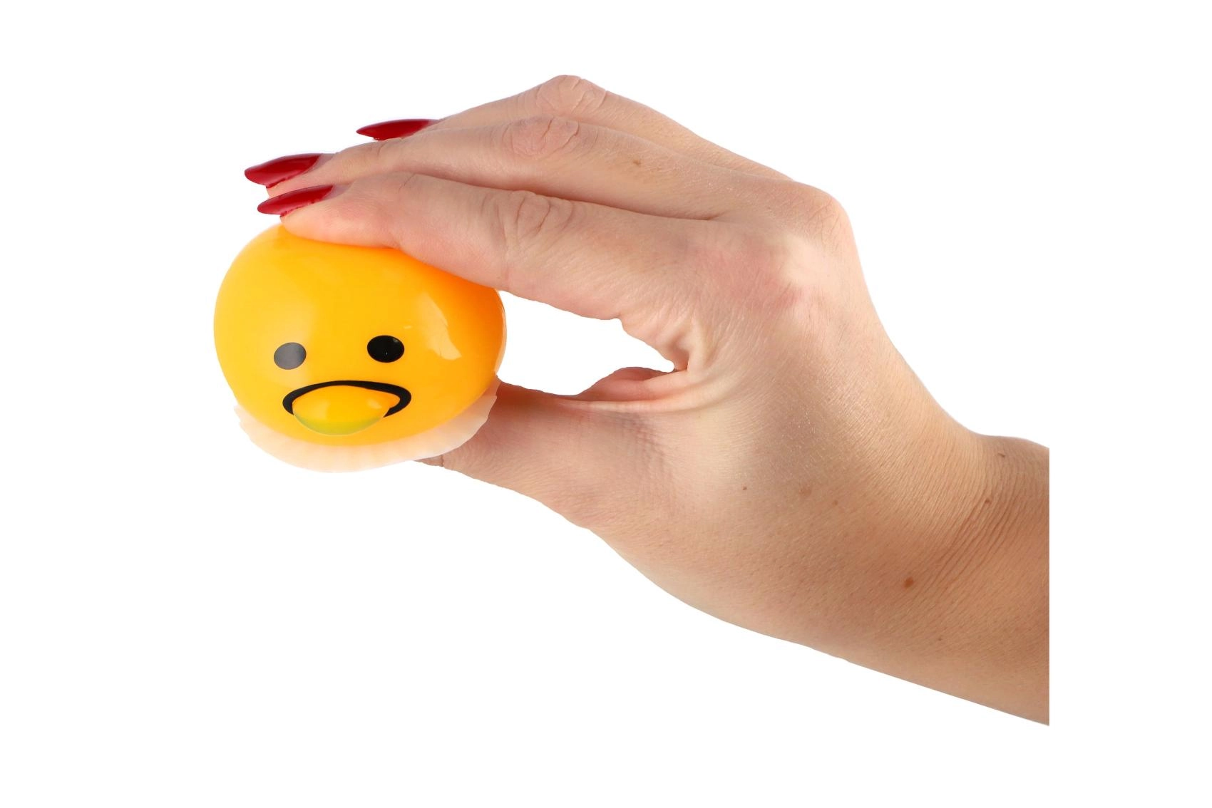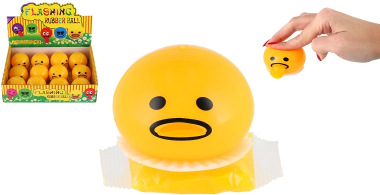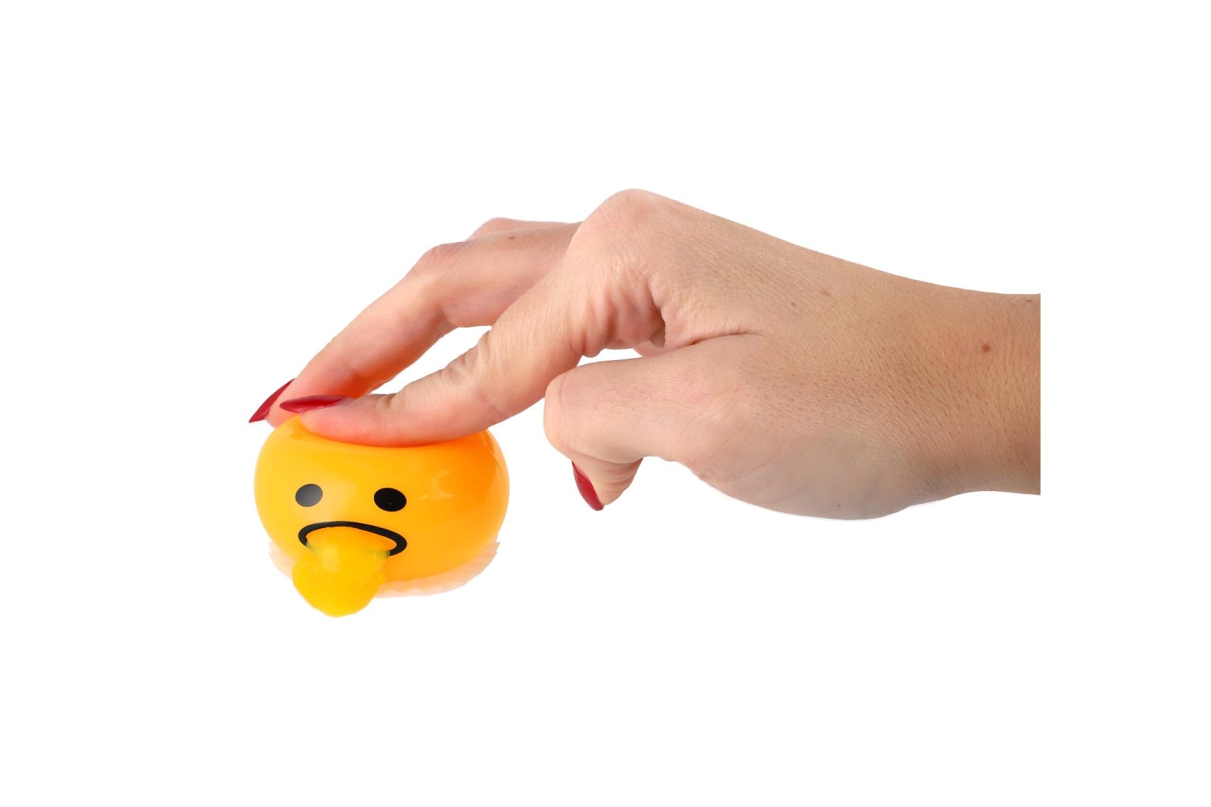 Zabawna antystresowa piłeczka w kształcie żółtego uśmiechniętego emotikona, która po naciśnięciu wypycha slime, a po zwolnieniu go zasysa z powrotem. Świetna do rozładowania napięcia, rozbawienia oraz jako oryginalny prezent do biura, szkoły lub domu.