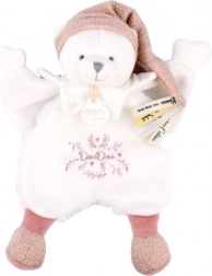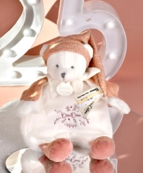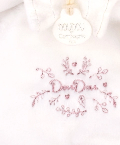 Ta delikatna pluszowa przytulanka w kształcie misia zachwyca subtelnym wyglądem i wysoką jakością wykonania. Różowa czapeczka, mięciutkie łapki jak małe kapciuszki oraz dyskretny haft Doudou na brzuszku tworzą zabawkę, do której maluszek chętnie się przytuli. Aksamitnie miękka powierzchnia wspiera odbiór sensoryczny i uspokaja podczas zasypiania.