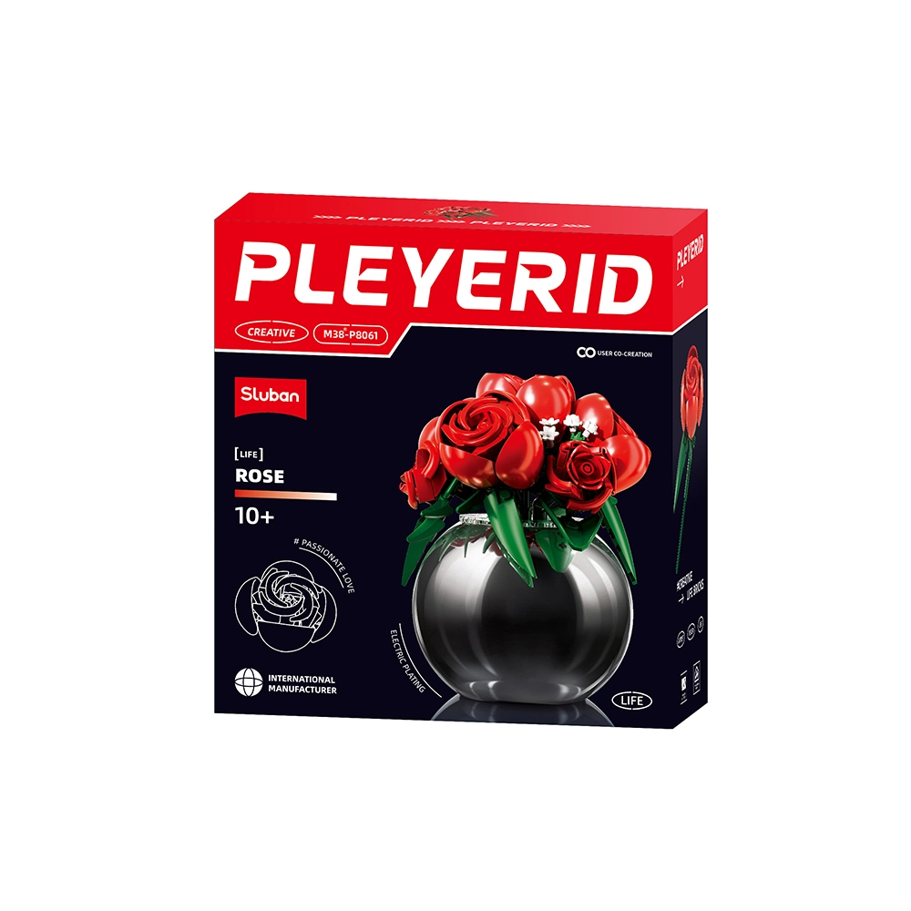Odkryj elegancką dekorację i kreatywną zabawę w jednym: zestaw konstrukcyjny czerwonych róż w wazonie od Sluban. Realistycznie uformowane róże, liście i białe kwiatuszki w kontrastowej czarnej wazoniczce nigdy nie zwiędną, upiększą wnętrze, a jednocześnie rozwijają małą motorykę, cierpliwość i kreatywność. Elementy z wytrzymałego plastiku ABSkompatybilne z LEGO i innymi markami.