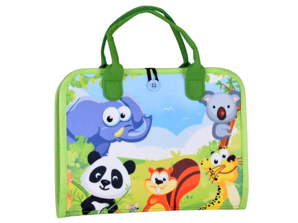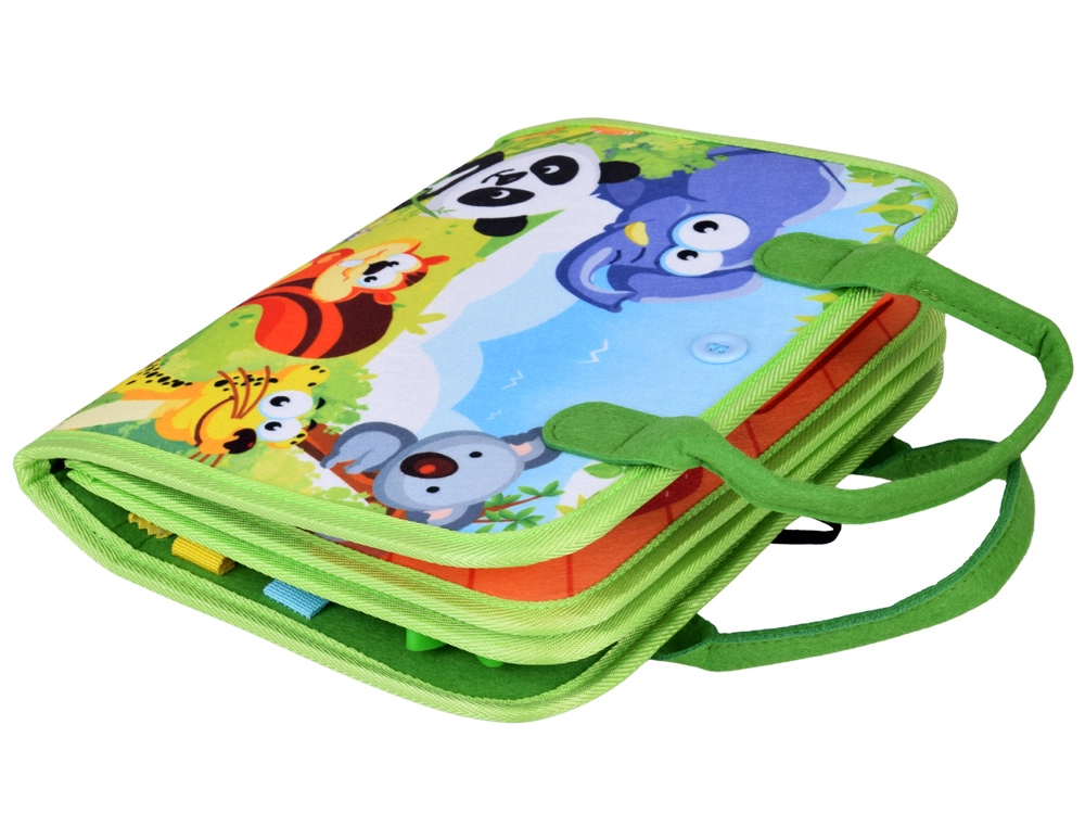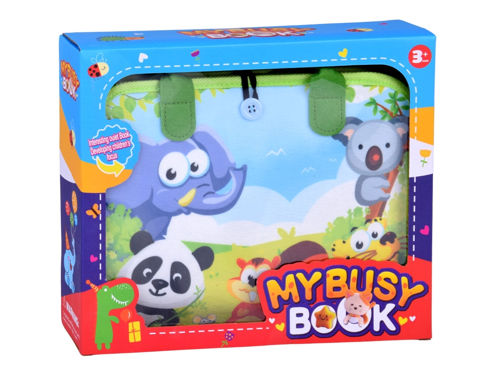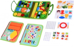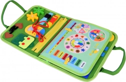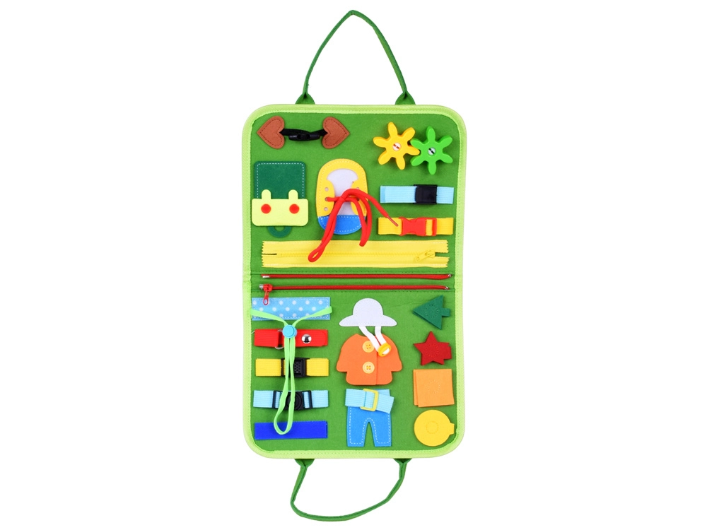 Sznurowanie, zamki, klamry, guziki, kształty na rzep, kuchnia, pokoik, ogródek oraz kalendarz – bogaty zestaw aktywności rozwijających motorykę i logiczne myślenie.