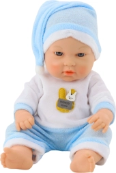 - lalka niemowlę w niebieskiej piżamce i czapeczce