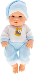 Ta urocza laleczka niemowlę ubrana jest w mięciutką niebiesko-białą piżamkę z czapeczką i ozdobną naszywką. Dzięki przyjemnym materiałom i kompaktowej długości 30 cm łatwo się ją trzyma, nosi i jest idealna także dla najmłodszych dzieci.