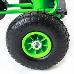 Duże pompowane koła z łożyskami (25 × 8 cm) zapewniają świetną przyczepność, tłumienie nierówności i stabilność podczas jazdy na zewnątrz i na podjeździe.