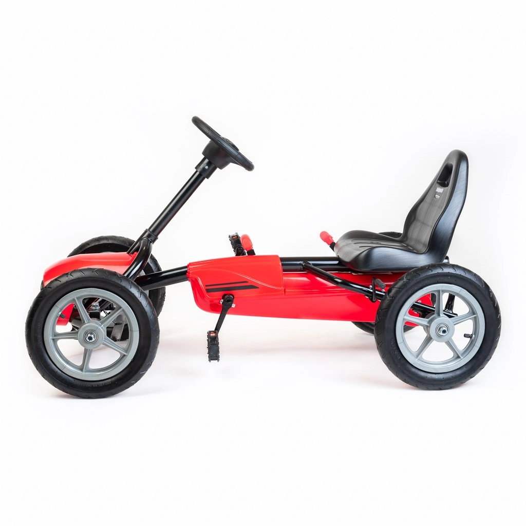Gokart na pedały BABY MIX Buggy to świetny towarzysz dla dzieci, które kochają ruch i aktywność na świeżym powietrzu. Ergonomiczne siedzisko z dwoma stopniami regulacji odległości od kierownicy zapewnia wygodę, a stabilna metalowa konstrukcja z plastikowymi osłonami gwarantuje trwałość i sportowy wygląd. Duże pompowane koła z łożyskami zapewniają płynną jazdę po asfalcie i utwardzonych ścieżkach.