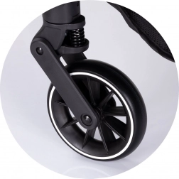 Łatwo demontowane koła z amortyzacją oraz tylni hamulec postojowy zapewniają stabilność i komfort także na gorszej nawierzchni.