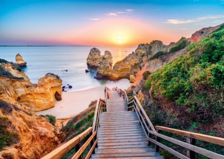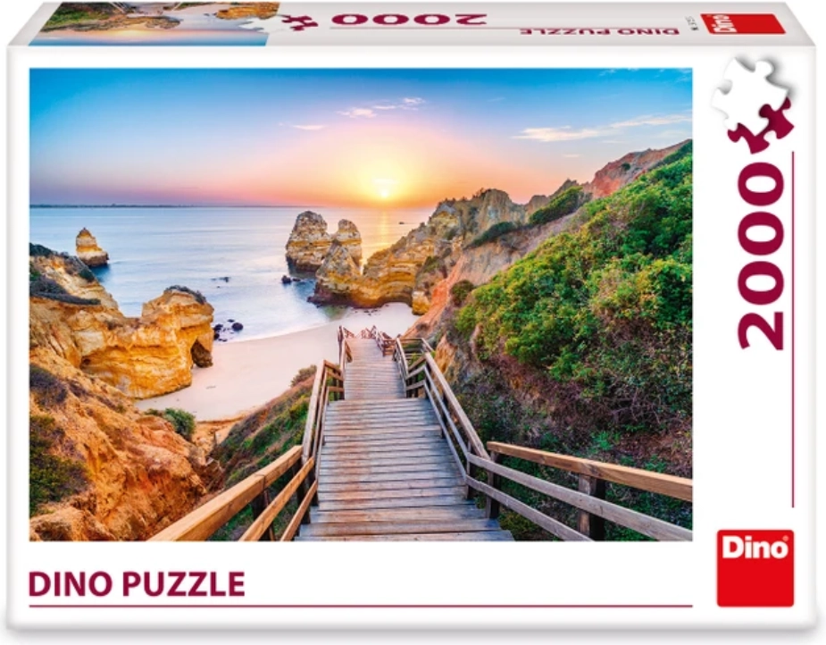 Odkryj urok wybrzeża z puzzlami DINO Plaża Camilo 2000 elementów. Wielkoformatowy motyw ze schodami prowadzącymi do piaszczystej zatoki oraz dramatycznymi klifami w ciepłych barwach zachodu słońca tworzy obraz, który wyróżni się w każdym wnętrzu. Dzięki precyzyjnemu wycięciu i wysokiej jakości tekturze elementy świetnie do siebie pasują, a układanie jest płynne i satysfakcjonujące.
