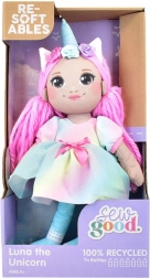 Urocza i bezpieczna pluszowa lalka o wielkości ok. 30 cm ucieszy najmłodsze dzieci i rodziców. Została wykonana z poliestru z recyklingu, dzięki czemu jest przyjazna dla środowiska – na każdą lalkę ponownie wykorzystuje się około 7 plastikowych butelek. Dzięki super miękkiemu korpusowi, przytulnemu wykonaniu oraz haftowanym lub drukowanym rysom twarzy jest idealna do bezpiecznego tulenia i zabawy już od najwcześniejszego wieku.