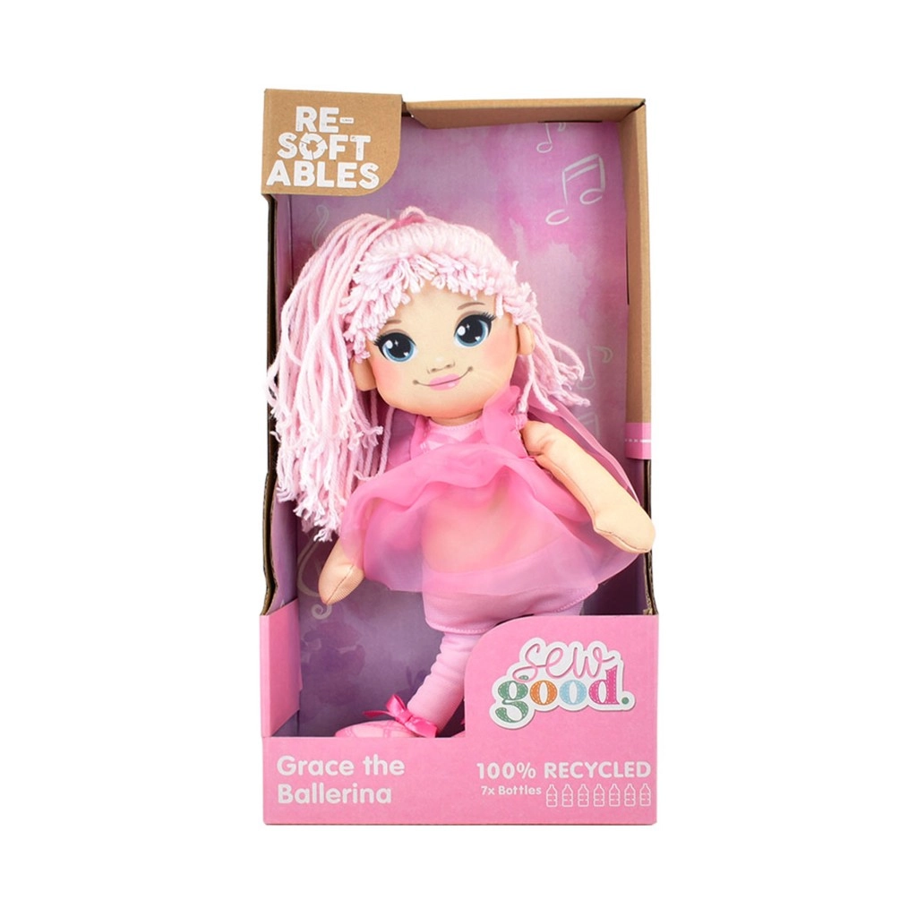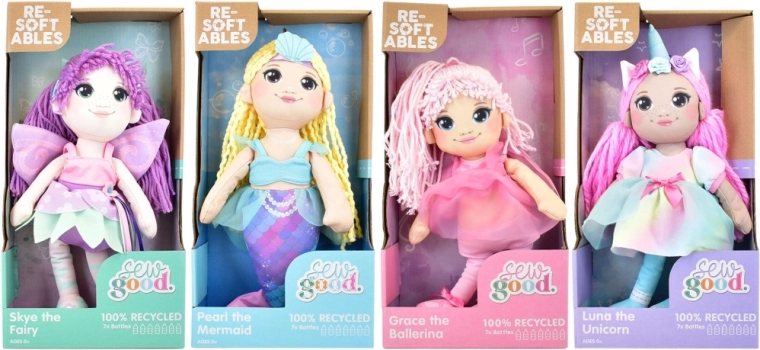 - Wykonana z około 7 poddanych recyklingowi plastikowych butelek na jedną lalkę