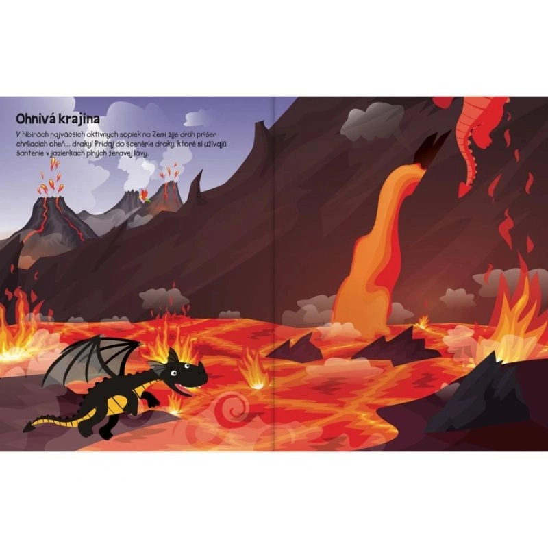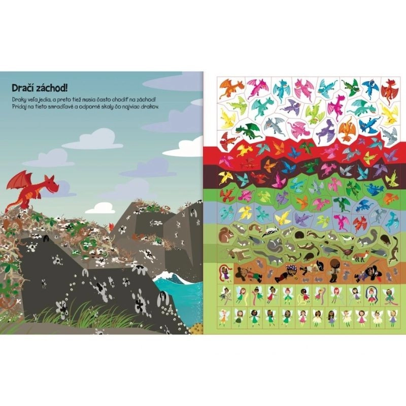 Ten zeszyt z naklejkami wprowadza do świata pełnego przygód – od potężnych górskich smoków po chciwych strażników skarbów pełnych złota i drogocennych kamieni. Dzieci mogą z łatwością tworzyć oryginalne scenki oraz rozwijać wyobraźnię i małą motorykę.