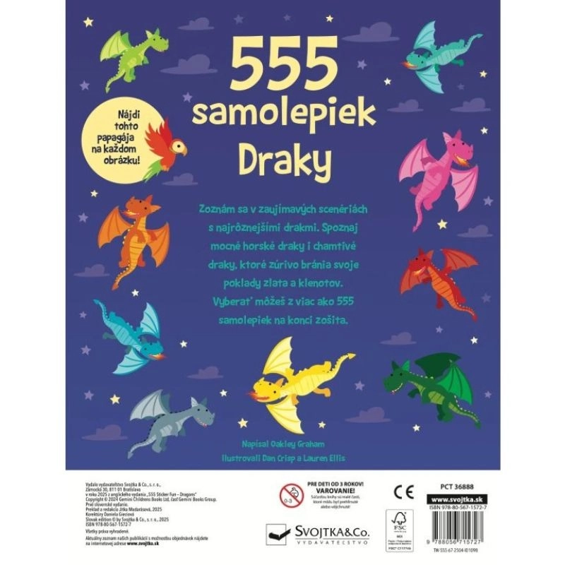 • Ponad 555 naklejek z barwnymi motywami smoków i dodatków.