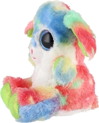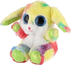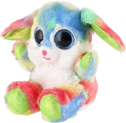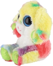 Ten kolorowy pluszowy króliczek podbije serca dzieci i dorosłych. Delikatny, przyjemny w dotyku materiał wprost zachęca do tulenia, a wyraziste niebieskie, błyszczące oczy i tęczowe futerko nadają zabawce figlarny i czarujący wygląd. Dzięki pozycji siedzącej doskonale sprawdzi się także jako dekoracja dziecięcego pokoju.