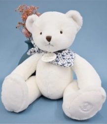 Ten biały pluszowy miś z elegancką chustką został zaprojektowany, by dawać dzieciom poczucie pewności i komfortu. Miękka powierzchnia zachęca do przytulania, a lekka konstrukcja jest idealna dla małych rączek. Miś spełnia europejskie normy CE, dzięki czemu jest bezpiecznym wyborem dla noworodków i starszych dzieci.