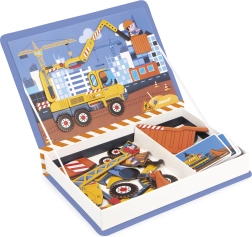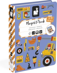 Magnetyczna książka Janod Magnetibook Na budowie oferuje naukę poprzez zabawę. Dzięki tematycznym magnesom dzieci tworzą własne budowlane sceny i odtwarzają prawdziwe maszyny oraz sytuacje z placu budowy. Kompaktowa, książkowa forma jest idealna w podróży i w domu.