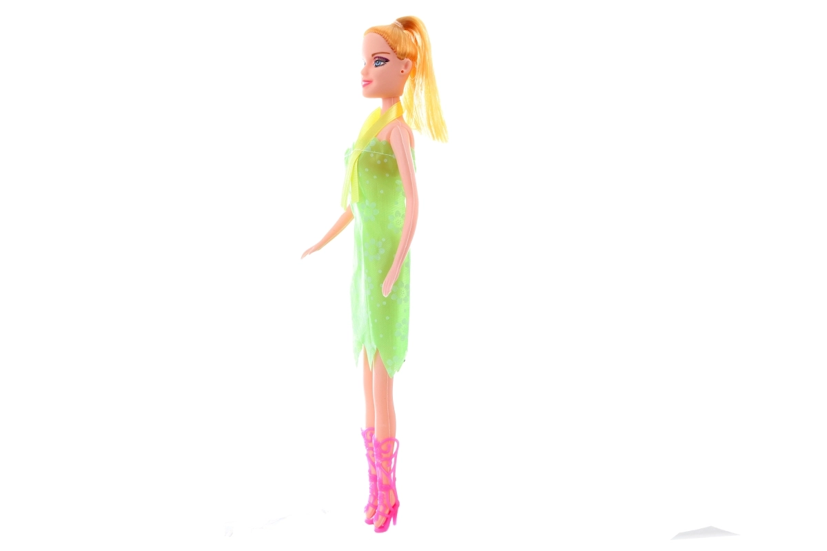 Ta stylowa lalka w sukience stanie się ulubioną towarzyszką codziennej zabawy. Dzięki ruchomym rękom i głowie potrafi przyjmować wiele póz i odgrywać różne scenki, a stabilne nogi zapewniają pewne trzymanie podczas manipulacji. Wysokiej jakości materiały i staranne wykonanie wspierają długą żywotność zabawki.