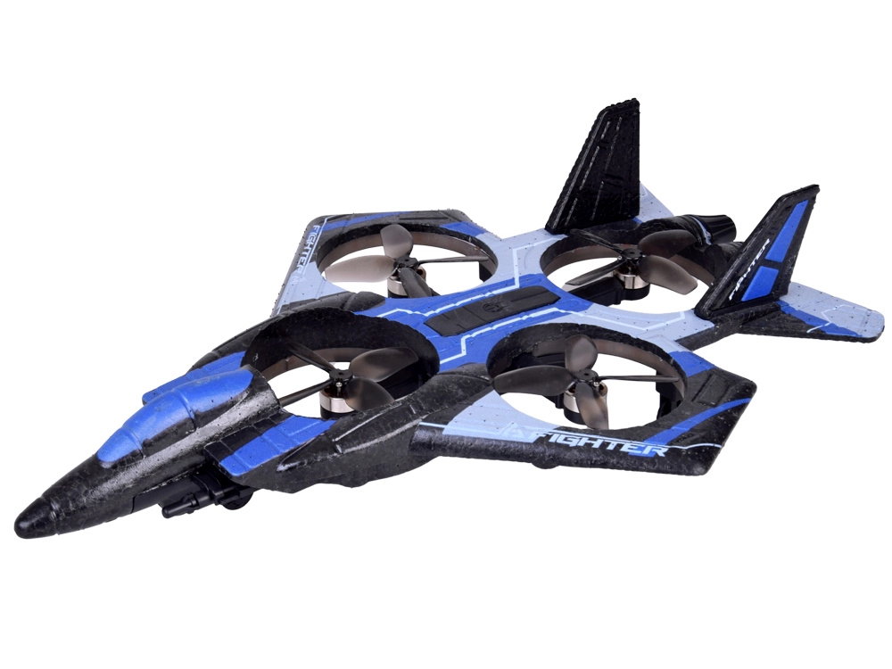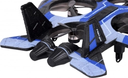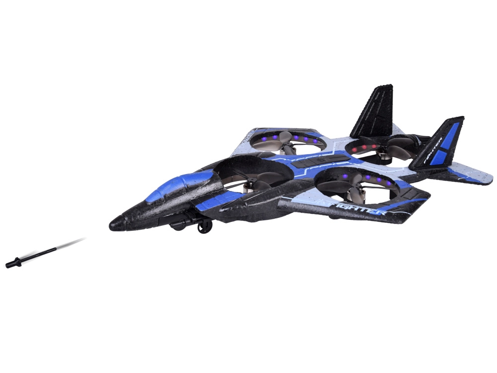 Kontroler RC dodatkowo oferuje tryb bojowy ze strzelaniem plastikowymi strzałkami (4 szt. w zestawie), dzięki czemu możesz zorganizować podniebne „pojedynki”. Kolorowe oświetlenie LED poprawia orientację i widoczność. Kontroler oferuje nawet 8 funkcji, w tym kalibrację żyroskopu, automatyczny start/lądowanie oraz awaryjne zatrzymanie.