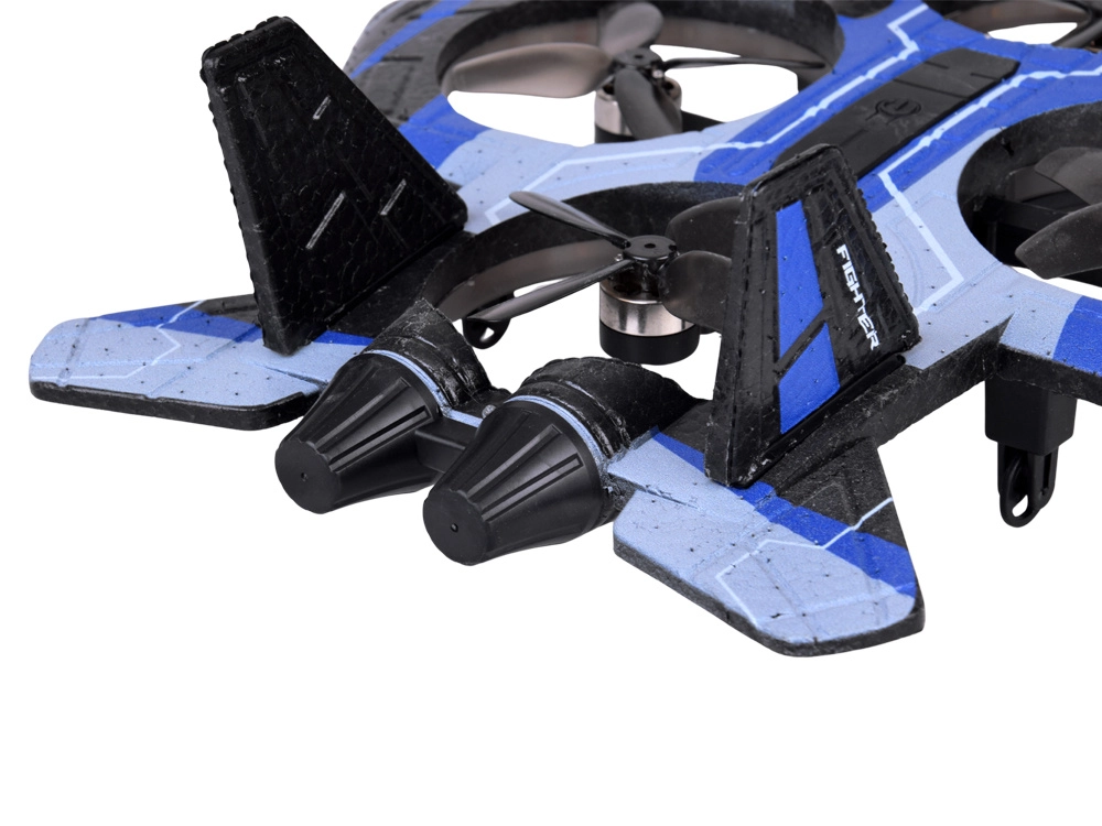 Dron Combat Flight łączy świetną zabawę, naukę i akcję. Dzięki lekkiej, wytrzymałej konstrukcji z osłoniętymi rotorami jest stabilny i nadaje się do bezpiecznego latania na świeżym powietrzu przy bezwietrznej pogodzie. Precyzyjne sterowanie zapewnia żyroskop oraz intuicyjna obsługa – albo dłonią za pomocą rękawicy ruchowej, albo precyzyjnym joystickiem.
