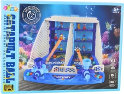- główna plansza, 2 wyrzutnie, 16 kulek, 3 komplety figurek–tarcz, boczne i górne elementy konstrukcji, naklejki o tematyce oceanicznej, instrukcja montażu
